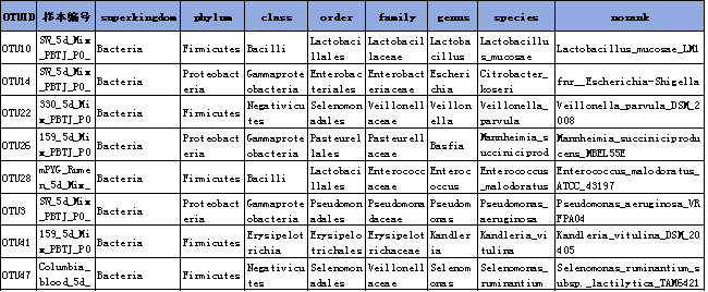 詳細(xì)的 OTU 豐度匯總