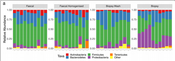 文獻研究通過比較健康志愿者配對的糞便和黏膜微生物群的特征,以驗證糞便樣本是否可以作為直腸活檢相關(guān)微生物群的替代品。