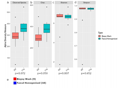 糞便和直腸活檢沖洗樣品間的物種多樣性比較