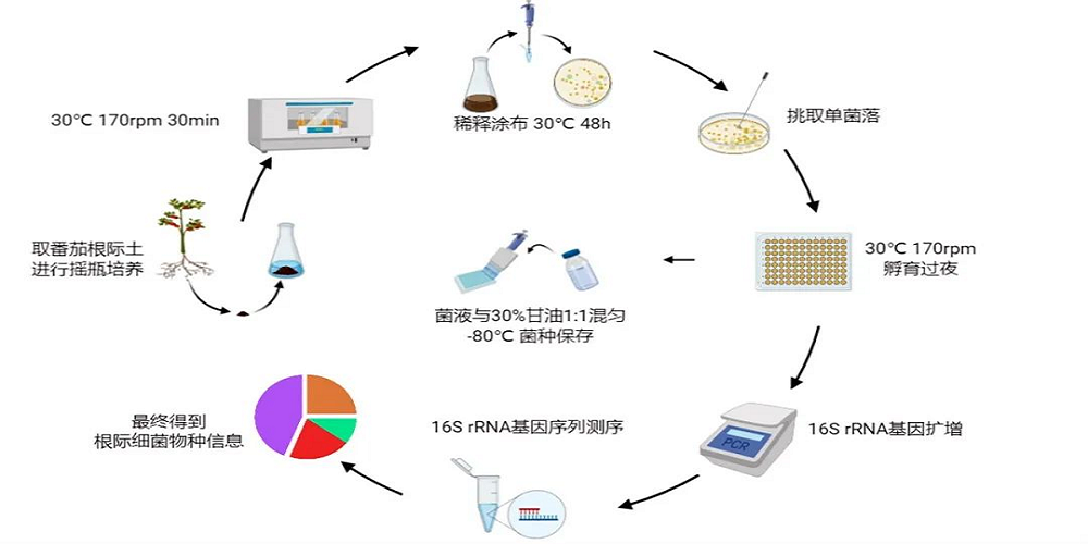 本文分別從不同地區(qū)選取番茄植株,采集根際樣品,從中分離出大量可培養(yǎng)根際細菌,并利用16s rRNA測序技術(shù)對其鑒定分類。