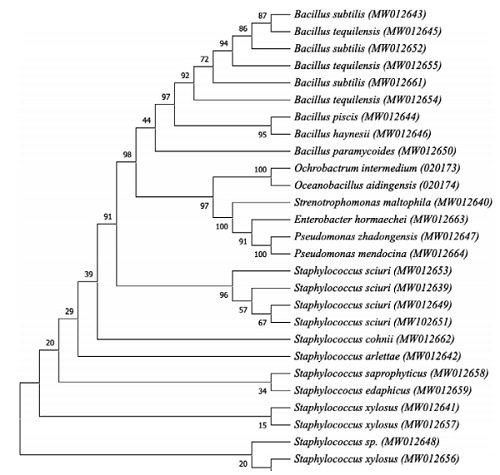 嗜鹽細菌菌株系統(tǒng)發(fā)育樹