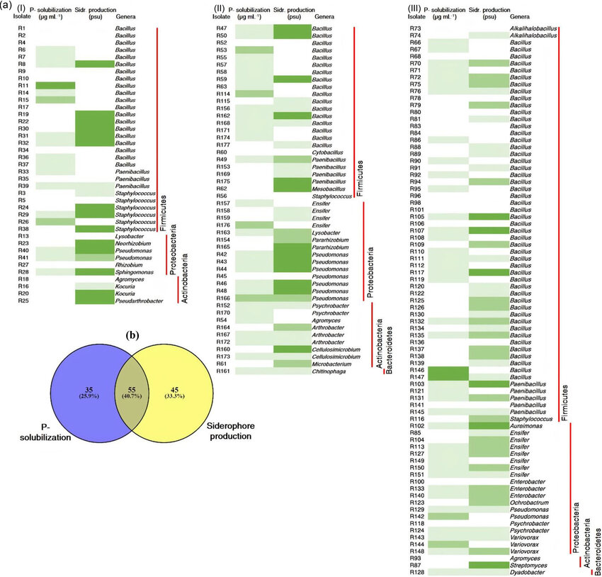 根據(jù)形態(tài)選擇總共177個不同的純菌落,其中粘土土純菌落41個,鈣質(zhì)土純菌落84個,沙質(zhì)土純菌落52個。然而,有11個菌落未能在各自的培養(yǎng)基或任何其他培養(yǎng)基上傳代培養(yǎng)。其余 166個分離株(85個來自LB培養(yǎng)基,81個來自Jensen培養(yǎng)基)在各自的培養(yǎng)基上培養(yǎng)以進行DNA分離,隨后使用16S rRNA基因進行測序以確定其系統(tǒng)發(fā)育位置。