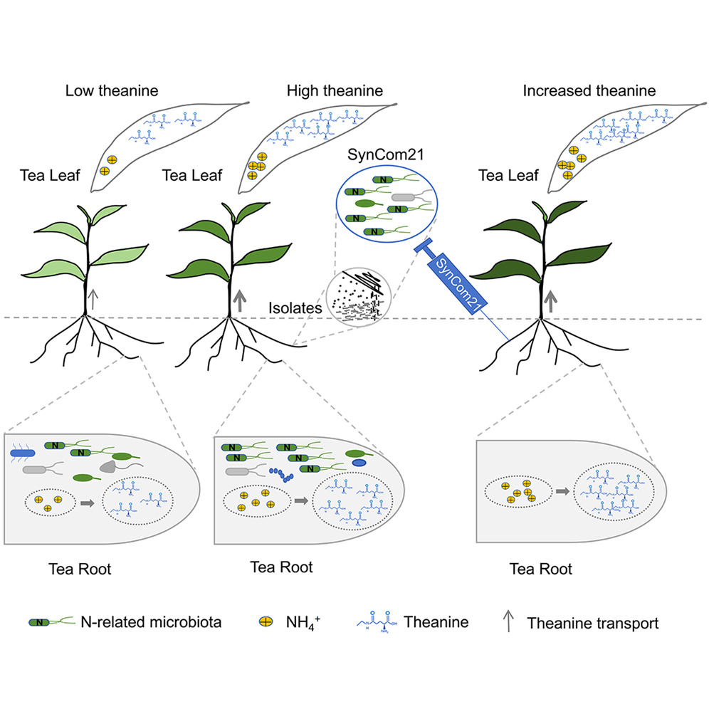 從高茶氨酸品種RG中分離根微生物和引進(jìn)SynCom為減少肥料施用、改善土壤性質(zhì)和利用根微生物來提高茶葉品質(zhì)和營養(yǎng)吸收提供了證據(jù)。