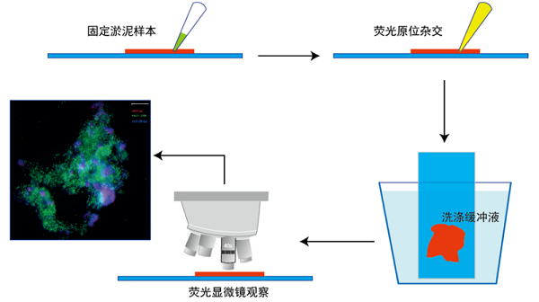 FISH(熒光原位雜交)技術(shù)基于核酸分子雜交原理,通過針對樣本中目標微生物(如硝化菌、反硝化菌等功能微生物)的16SrRNA基因序列設計出與目標微生物特異性核酸序列互補的熒光標記探針,利用帶有熒光標記的特異性寡核苷酸探針,讓探針與樣本中目標微生物的核酸在適宜條件下發(fā)生特異性結(jié)合。通過熒光顯微鏡,可直接在細胞原位觀察到熒光信號,從而精準定位目標微生物,同時實現(xiàn)微生物的定性識別與定量分析,清晰反映樣本中微生物群落結(jié)構(gòu)與功能狀態(tài)。