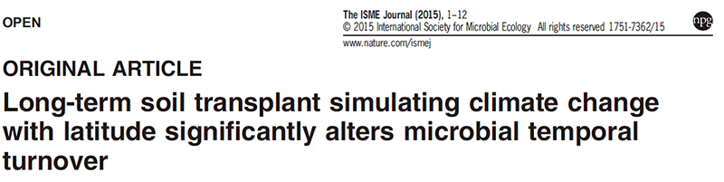 標(biāo)題:由長期的土壤移植引起的緯度和氣候變化明顯改變了土壤微生物的變化率