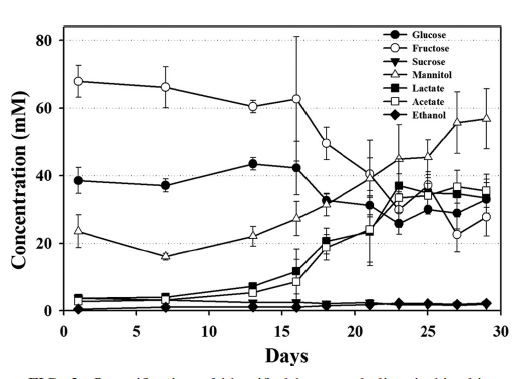 2.30天中泡菜上清液中游離的糖的含量