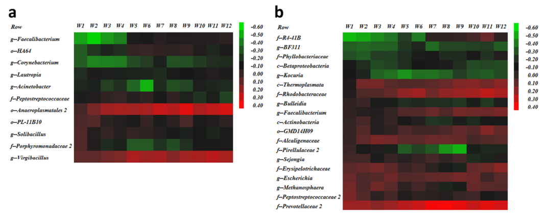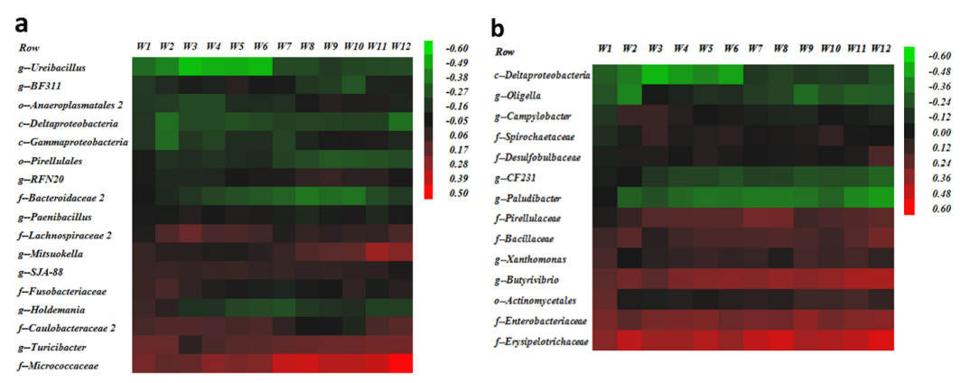 (7)細(xì)菌類群之間的相關(guān)性顯著差異,產(chǎn)奶量和產(chǎn)量的周平均值的相關(guān)關(guān)系