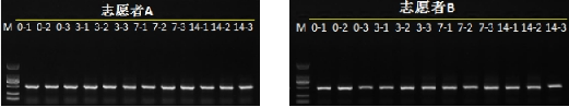 采取兩個(gè)志愿者的新鮮糞便(取后排出的中間部分,避免糞便表面的黏膜,更能很好的體現(xiàn)腸道微生物類群),分別分裝為12管,其中3管立即凍存于-20℃,作為平行實(shí)驗(yàn)及正對照,其余9管置于37℃水浴鍋中,恒溫保存3天,7天,14天。取樣后立即凍存于-20℃,用于后續(xù)基因組抽提。