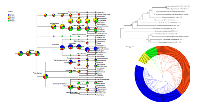 主要分析不同樣本中微生物的進化關系,常用系統發(fā)生進化樹、分類學分析樹等來展示。