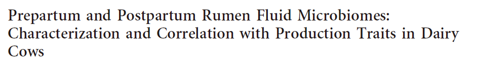 Lima, F. S., G. Oikonomou, S. F. Lima, M. L. Bicalho, E. K. Ganda, J. C. Filho, G. Lorenzo, P. Trojacanec and R. C. Bicalhoa (2015). “Prepartum and postpartum rumen fluid microbiomes: characterization and correlation with production traits in dairy cows.” Appl Environ Microbiol 81(4): 1327-1337.