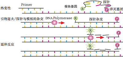 多重?zé)晒舛?/span>PCR(Multiple fluorescencequantitative PCR)技術(shù)是在熒光定量PCR技術(shù)的基礎(chǔ)上,利用幾種不同熒光基團(tuán)的組合,結(jié)合儀器對不同通道熒光的檢測能力實(shí)現(xiàn)對多個(gè)靶標(biāo)的實(shí)時(shí)定量檢測。引物和探針的特異性是多重qPCR實(shí)驗(yàn)的關(guān)鍵。