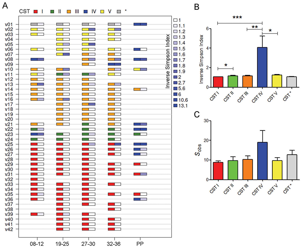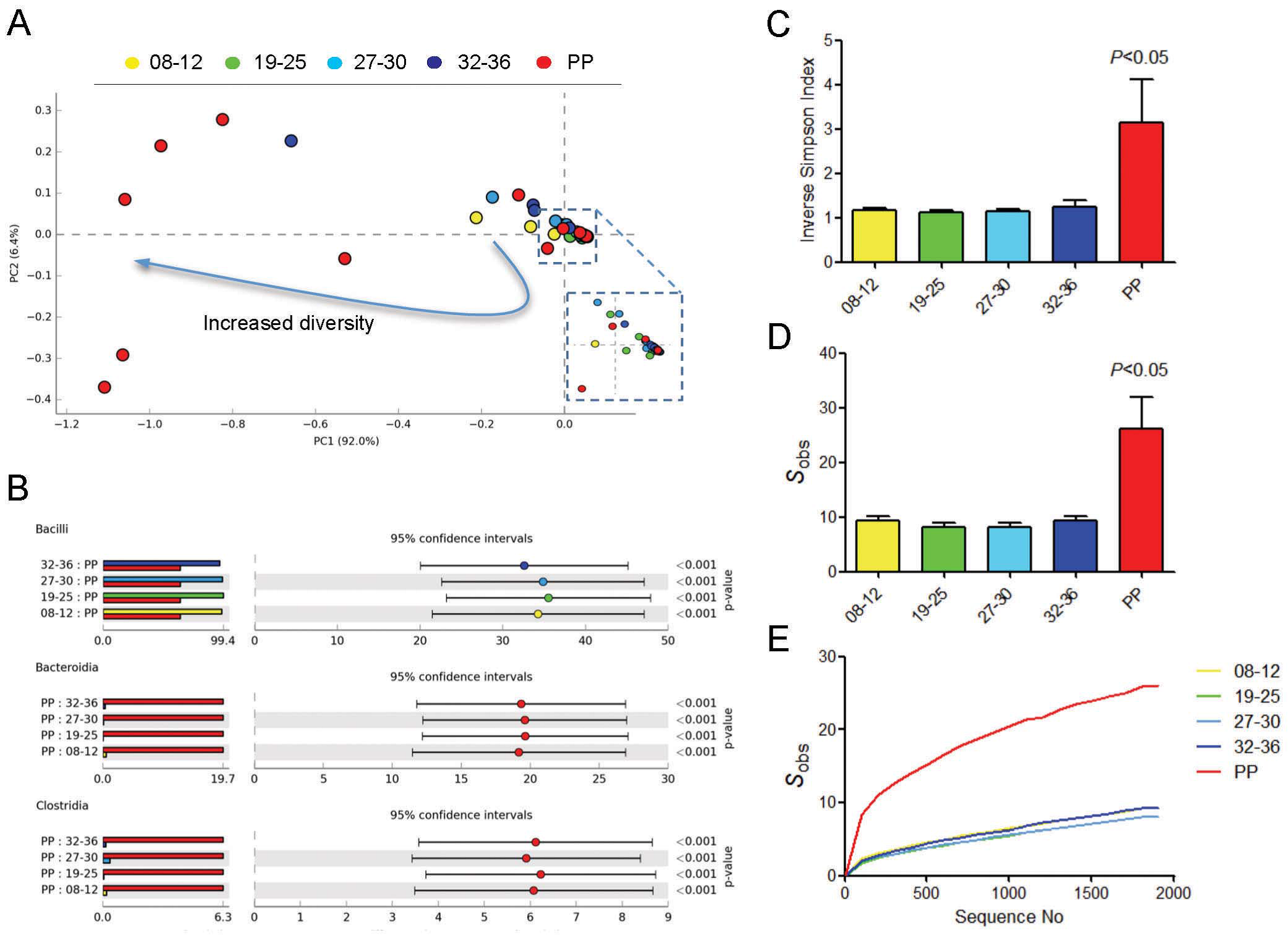 (1)細(xì)菌多樣性在產(chǎn)后婦女的陰道中明顯增加