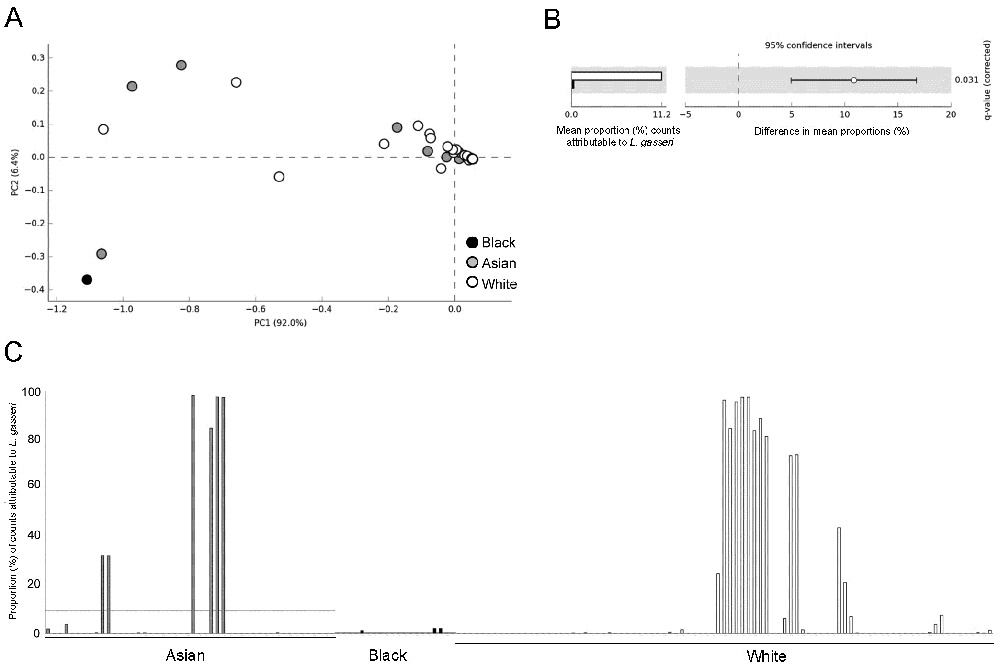 ?。?)在英國(guó)婦女中,從產(chǎn)前至產(chǎn)后的整個(gè)過(guò)程中,陰道微生物類群的變化圖(不同顏色代表不同的細(xì)菌種類)