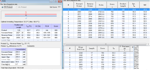 7.采用oligo軟件驗(yàn)證引物和探針,查看引物探針的退火溫度等信息;
