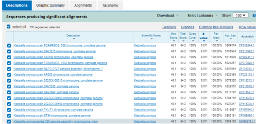 1.在NCBI的基因組Genbank、Refseq數(shù)據(jù)庫中,檢索下載產(chǎn)酸克雷伯菌全部已知菌株的基因組序列。