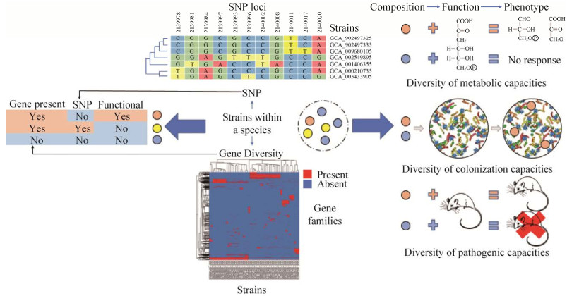 同一物種的不同菌株之間的基因多樣性和單核苷酸多態(tài)性導(dǎo)致功能和表型的多樣性