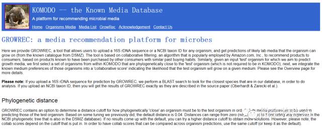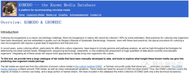 今天給大家隆重推出一個超級好的網(wǎng)站,網(wǎng)站名字叫KOMODO(Known Media Database),沒錯,網(wǎng)站作者就是嚴(yán)(tiao)肅(pi)地把科莫多巨蜥的照片放在了網(wǎng)站主頁,見下圖1左上角。言歸正傳,這個網(wǎng)站的神奇之處就在于可以根據(jù)細(xì)菌或古菌16S rDNA的序列來預(yù)測培養(yǎng)該菌的培養(yǎng)基配方!文章發(fā)表在2015年10月13號的Nature communication上[1],見下圖2。