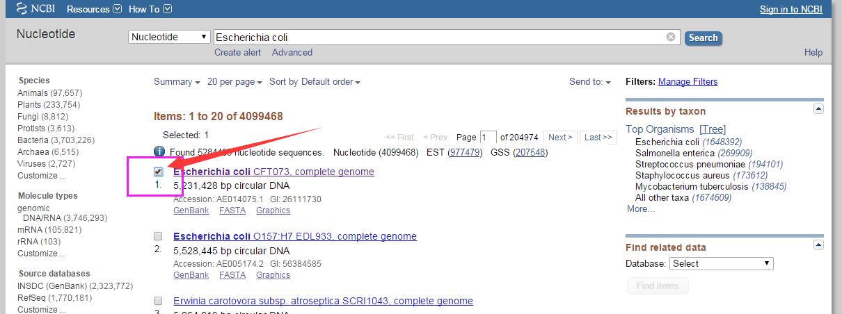 NCBI是一個(gè)強(qiáng)大的數(shù)據(jù)庫,也是生物學(xué)科經(jīng)常使用的搜索引擎,它收納了大量的基因序列。我們以大腸桿菌為例下載它的基因序列。