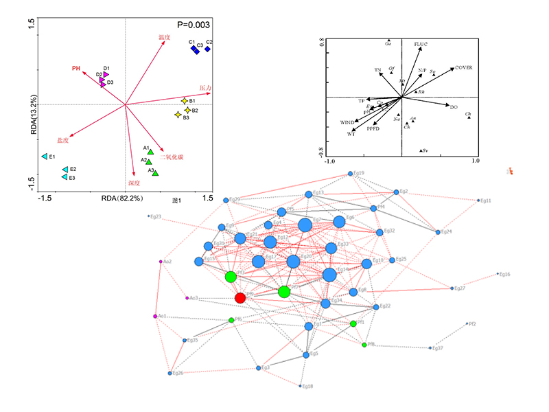 不僅可以分析微生物間相互作用關系,也可以分析不同環(huán)境因子與樣本中微生物的關系。分別用微生物相關性分析圖、RDA/CCA來展示。