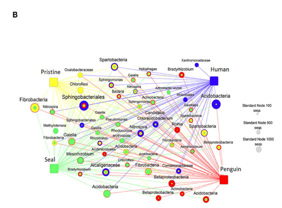 菲爾德斯半島是南極地區(qū)最大的無(wú)冰區(qū),人類活動(dòng)頻繁,企鵝和海象也比較常見(jiàn)。因此在該地區(qū)采用454高通量測(cè)序技術(shù),對(duì)人類聚居地、企鵝聚居地、海象聚居地和原始區(qū)域土壤細(xì)菌群落多樣性和結(jié)構(gòu)進(jìn)行研究。